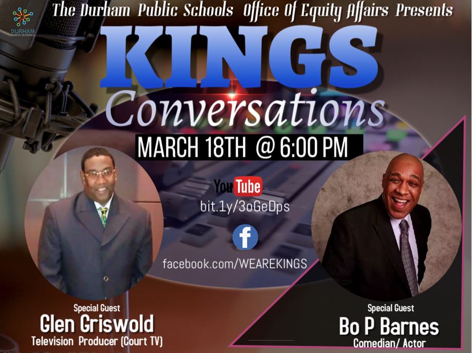 The Kings Program with be host their monthly KINGS CONVERSATION with two special guess Glen Griswold, TV Producer for Court TV, and Comedian Bo P. This is a special treat for our SCS Family because Glen Griswold is Coach Sanders’ father!