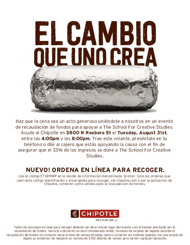 Gryphons! Make sure you join us at Chipotle, Roxboro Rd. location from 4:00 – 8:00 p.m. Tuesday, August 31 for our 1stPTSA Dine-Out Night! Show them the flyer (attached and on our social media sites) to get credit for our school.